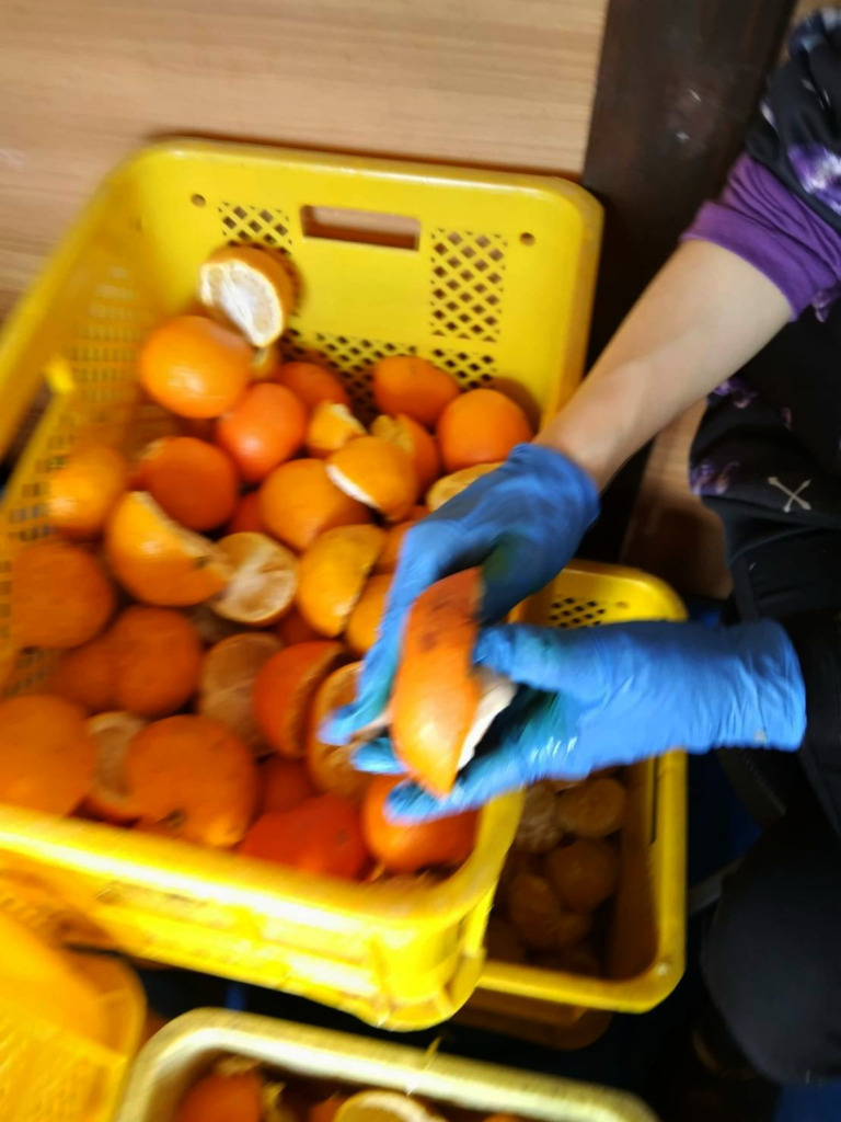 ・みかん作業、慣れてスピードが上がってきました。ミカンの臭いはとても好きです。