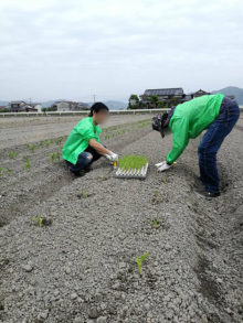 ・前日の疲れが残っていたせいか、トウモロコシの苗植えは大変でした。