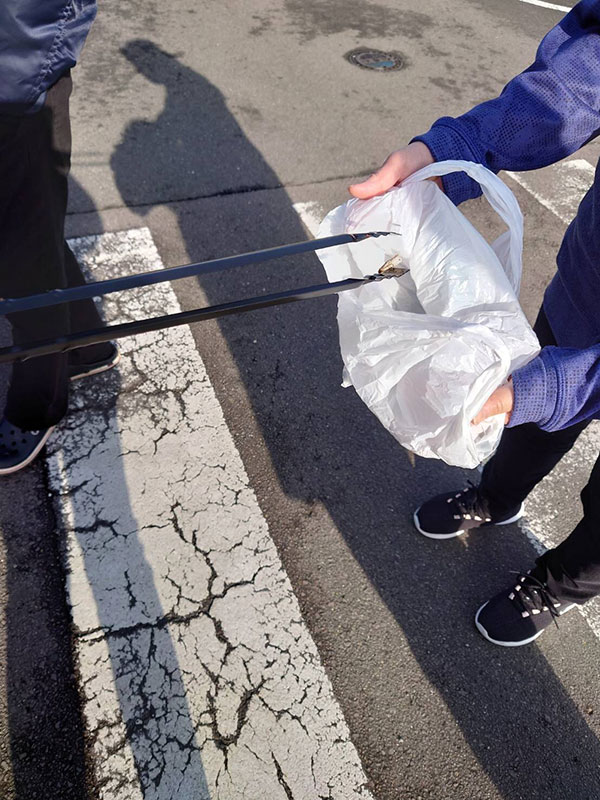 ・昭和地区清掃で紐や紙ごみを拾いました。