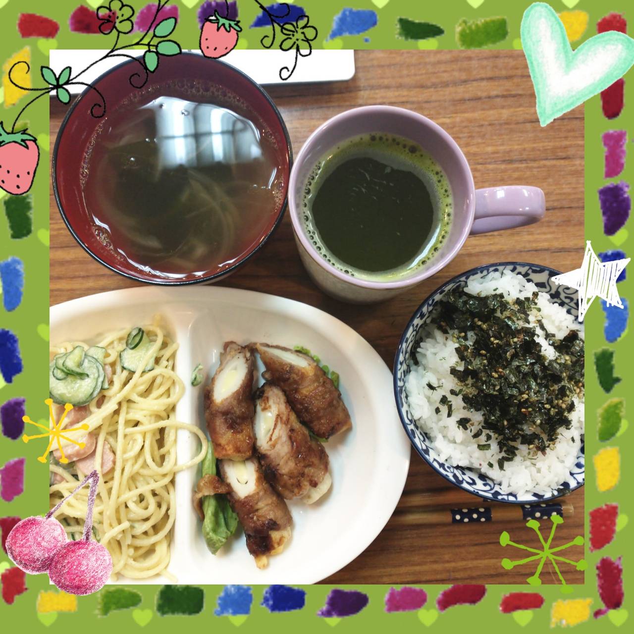 ステラ・コア:ちくわチーズの肉巻き・スパサラ・わかめスープ