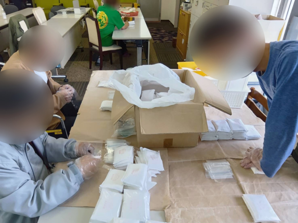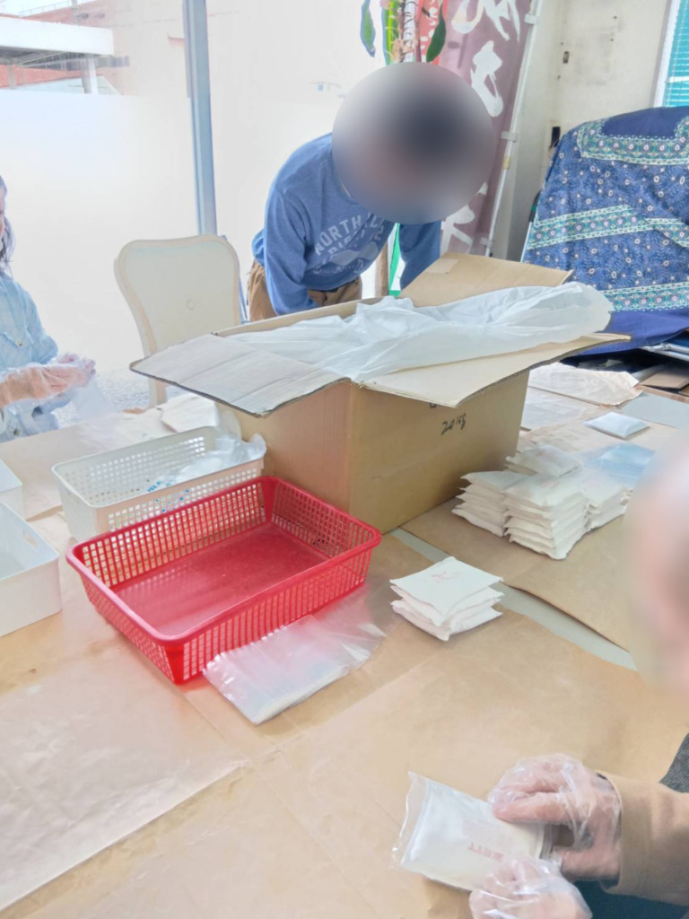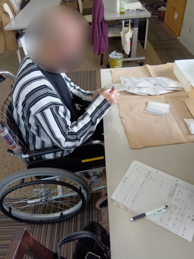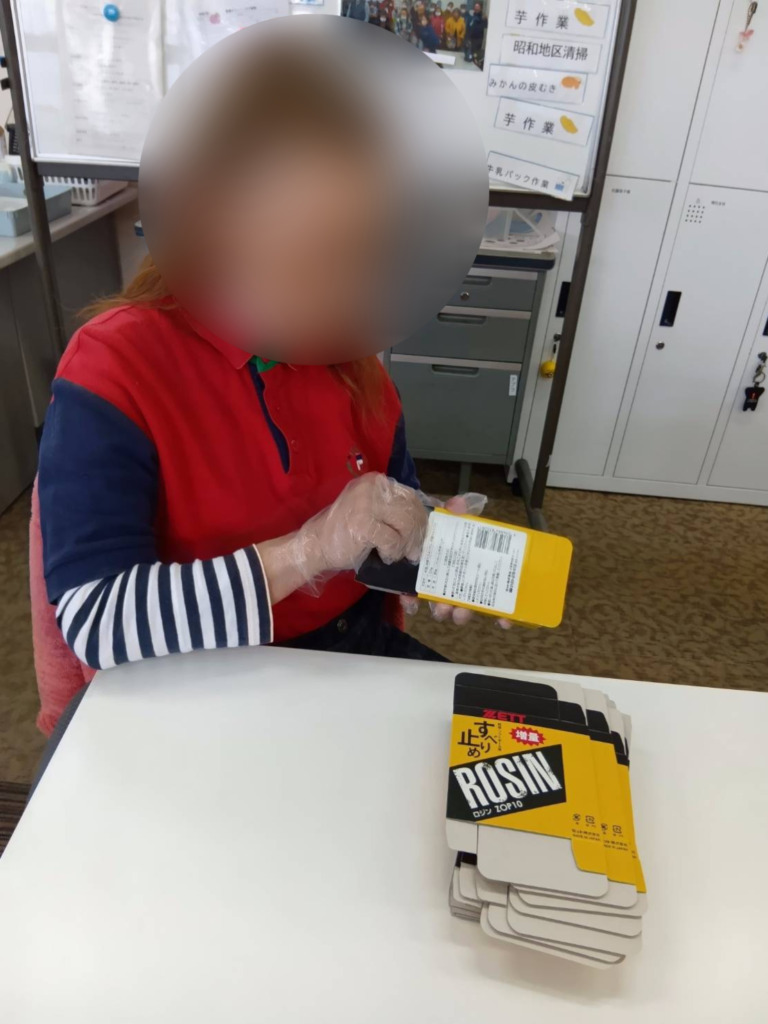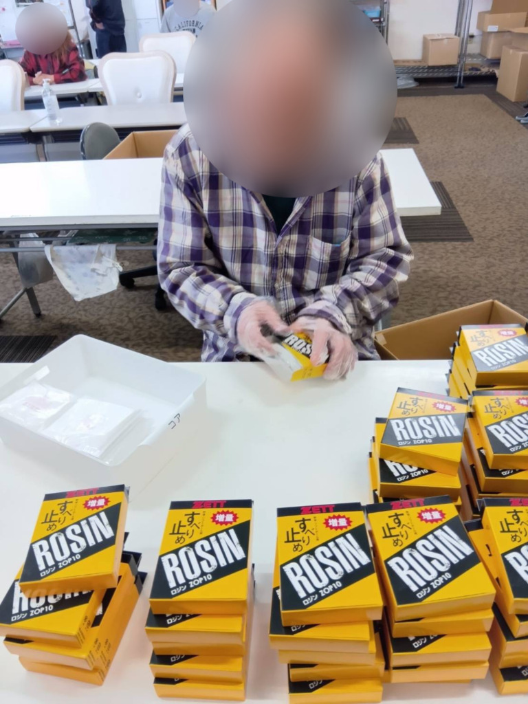 ・ロジンの袋入れ、頑張りました。糸くずを取り除くようによく確認しました。