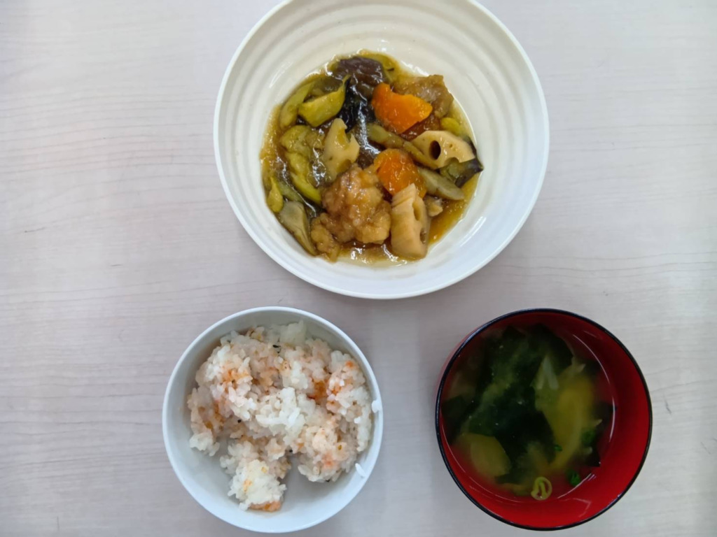 コア:肉となすびのソテー・ひじきの煮物・大根の酢の物・ご飯