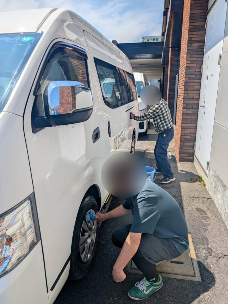 ・志田洗車は初めてで緊張しましたが、教えてもらいながら頑張りました。