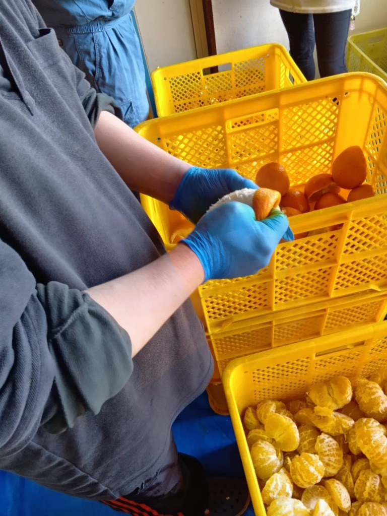 ・ミカンの皮むき大変でしたが、楽しく作業に取り組むことができました。