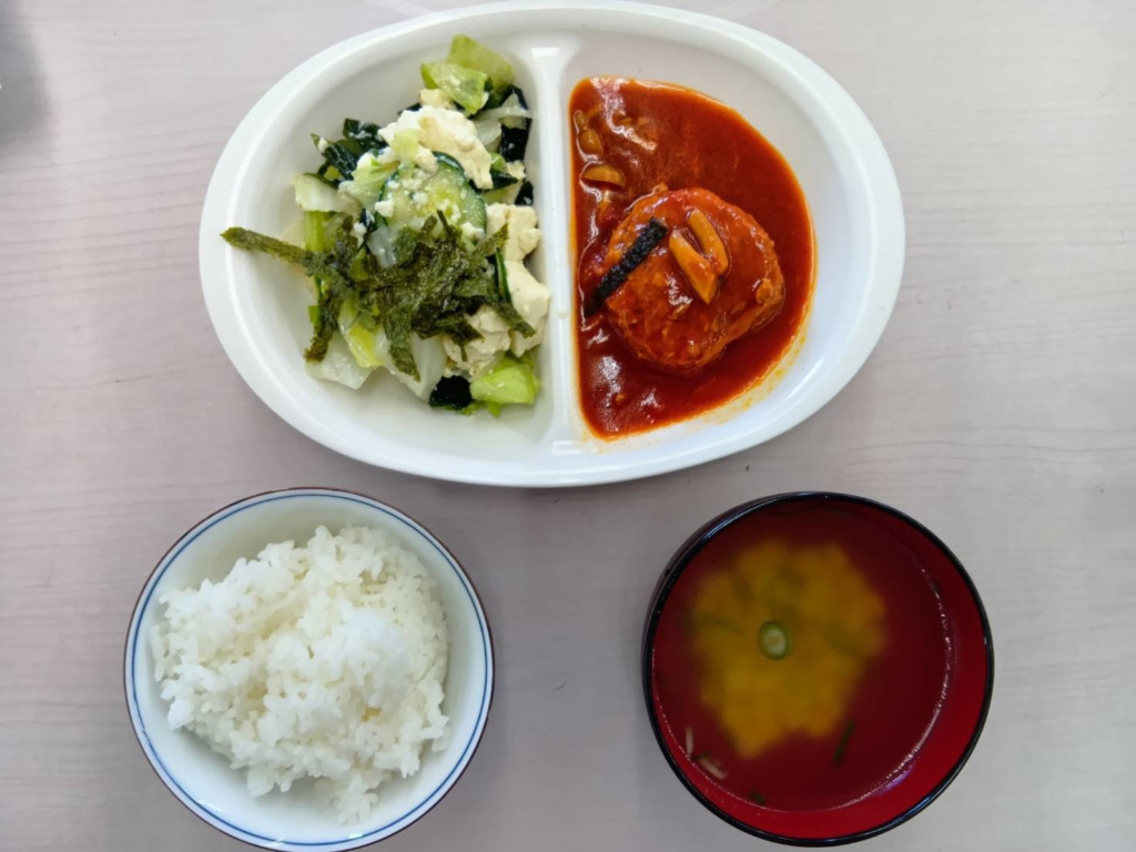 まんてん・アモーレ・ステラ・シンシア:煮込みハンバーグ・チョレギサラダ・味噌汁・ご飯